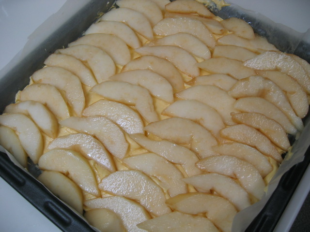 今日は天板いっぱいの洋梨ケーキです。