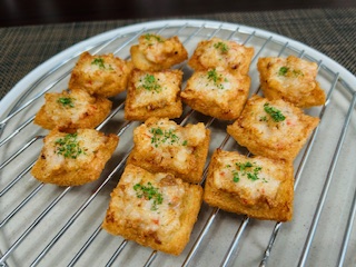 パンにのせて揚げるおつまみ。