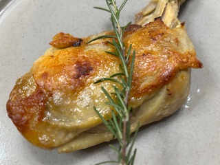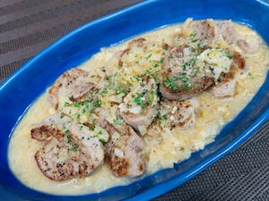 豚ヒレのソテー、チーズと白ワインの
