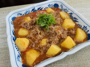 肉じゃが。トマトはわざと煮崩して