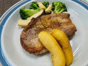 ポークソテーにリンゴのソテーを