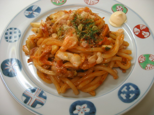 チーズキムチ焼きうどんです。