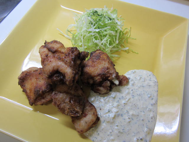 これにタルタルソースを添えますが