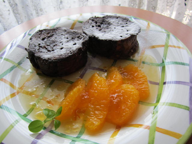 粉砂糖をふり、オレンジの