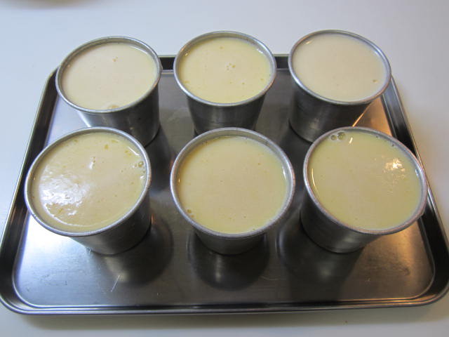 朝一番でデザートのプリンを作りましたわ。