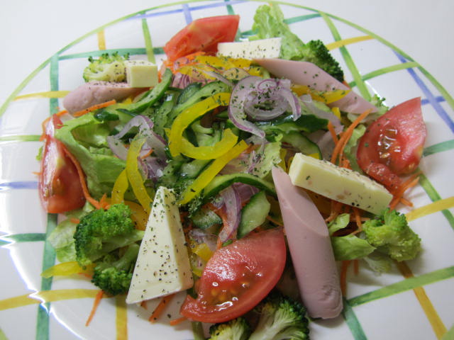 休日の朝ごはんは、サラダも