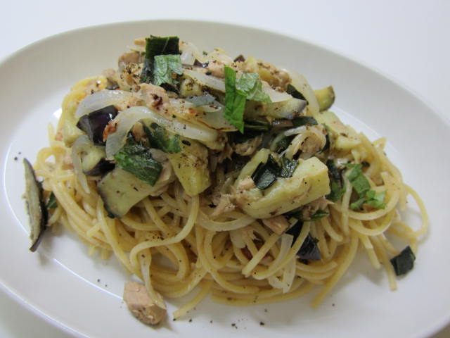レシピですが、なすと玉ねぎ、ツナを