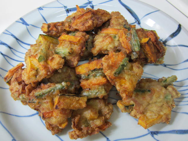 豚天に野菜を混ぜてかき揚げに