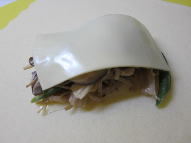 春巻きの皮に半分に切ったスライス