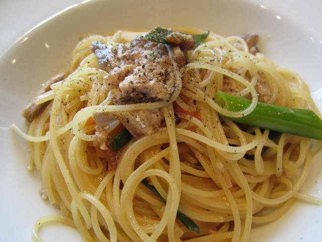 秋刀魚と九条ねぎのパスタ。
