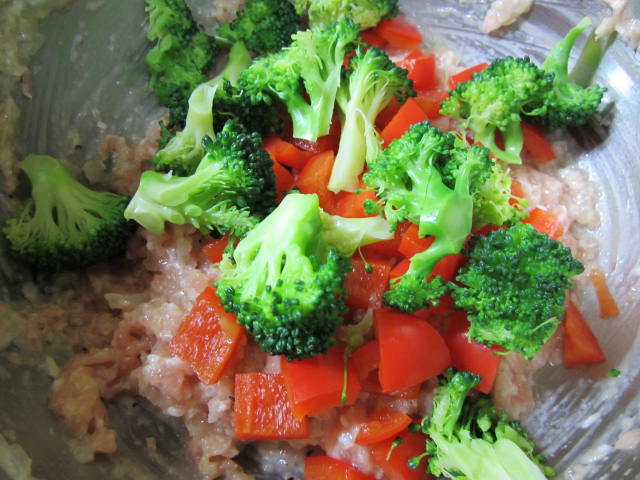 つくねのように玉ねぎやしょうが、