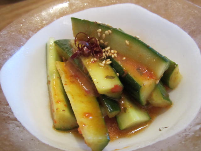 まずはきゅうりのピリ辛漬けを。