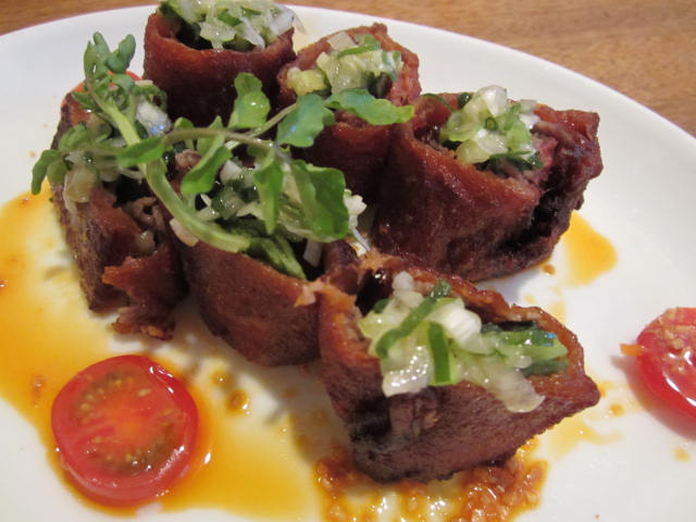 牛肉のねぎ巻き香味揚げ。
