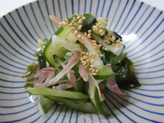 きゅうりとわかめ、茗荷に