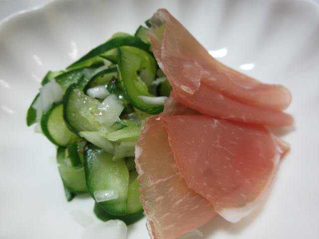 味の補いに生ハムを添えて。