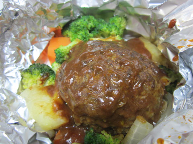 ハンバーグのホイル焼きも。