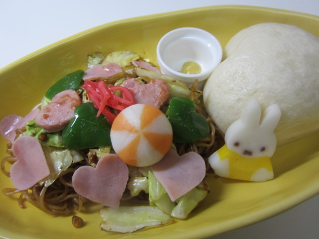 焼きそばに添えてワンプレートに。