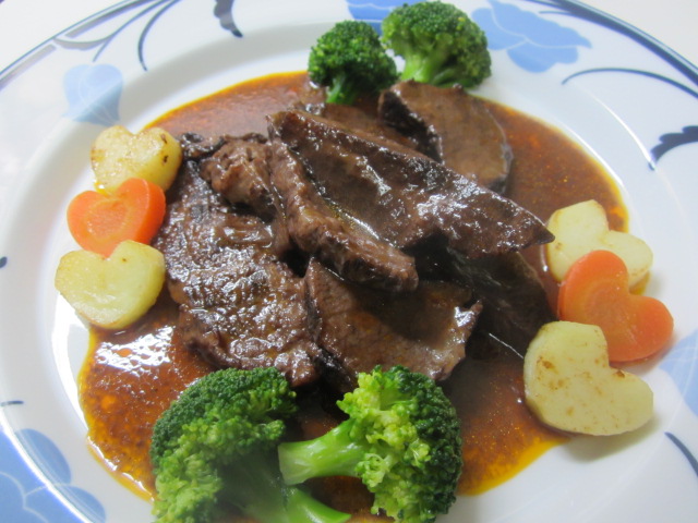 夕食は牛肉の赤ワイン煮込み。