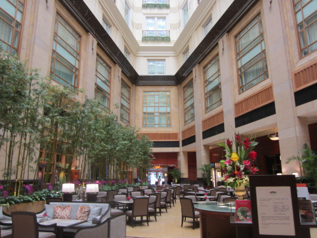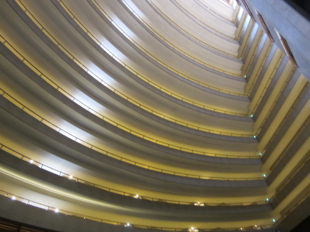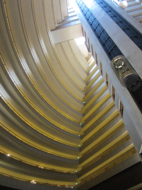 最上階までの吹き抜けが印象的なホテル。