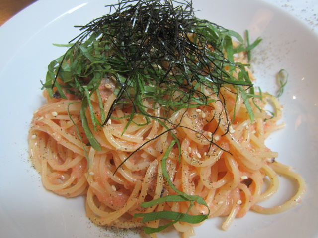 あさり入りの明太子パスタ。