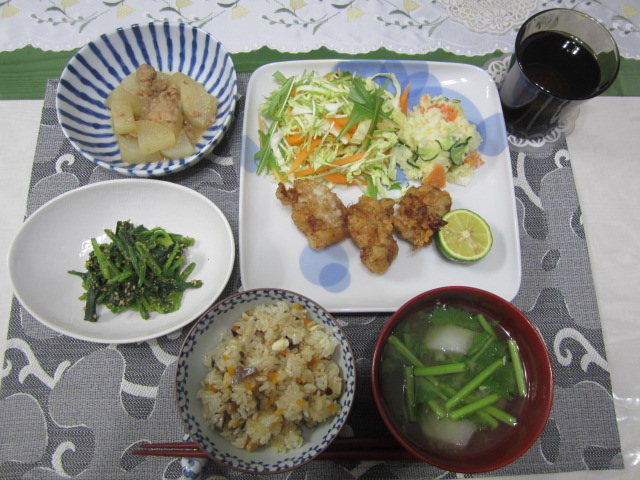 かやくごはんに小かぶのお味噌汁。