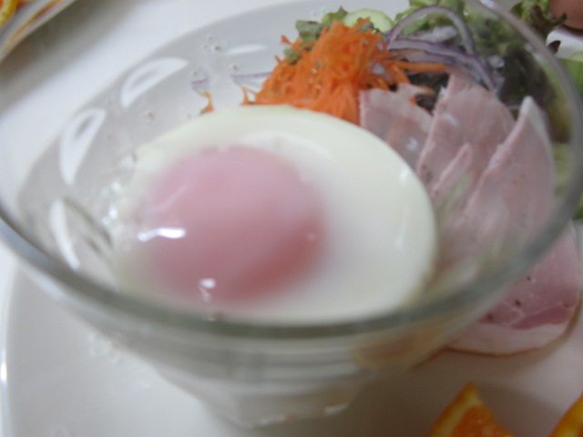 下のマッシュポテトと半熟卵を