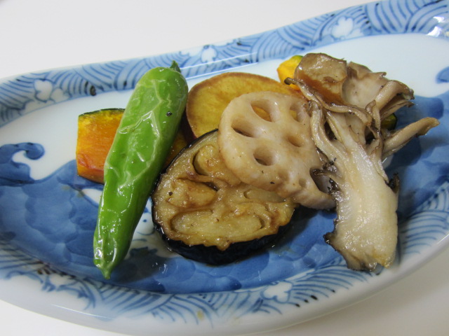 根菜やきのこを素揚げして