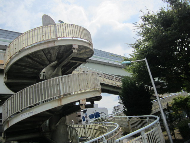 こんな螺旋階段の歩道橋は