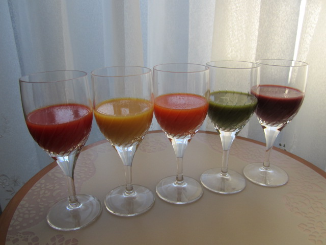 5色のジュース。お腹がタポタポに