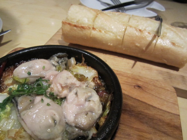 牡蠣の燻製と白菜のアヒージョ。