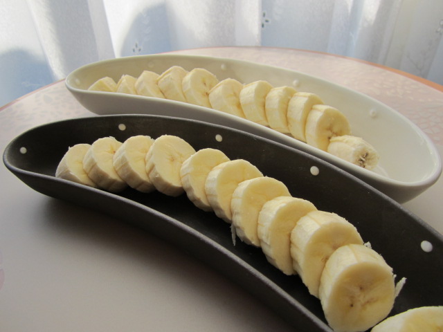 バナナ皿にのせたバナナを添えて。