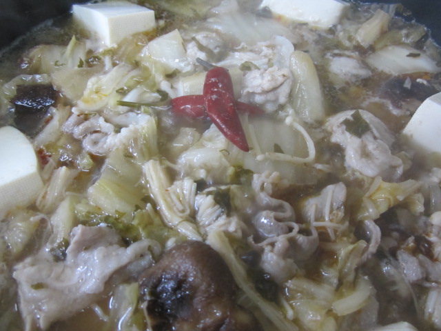 これは酸菜鍋。白菜の漬物を