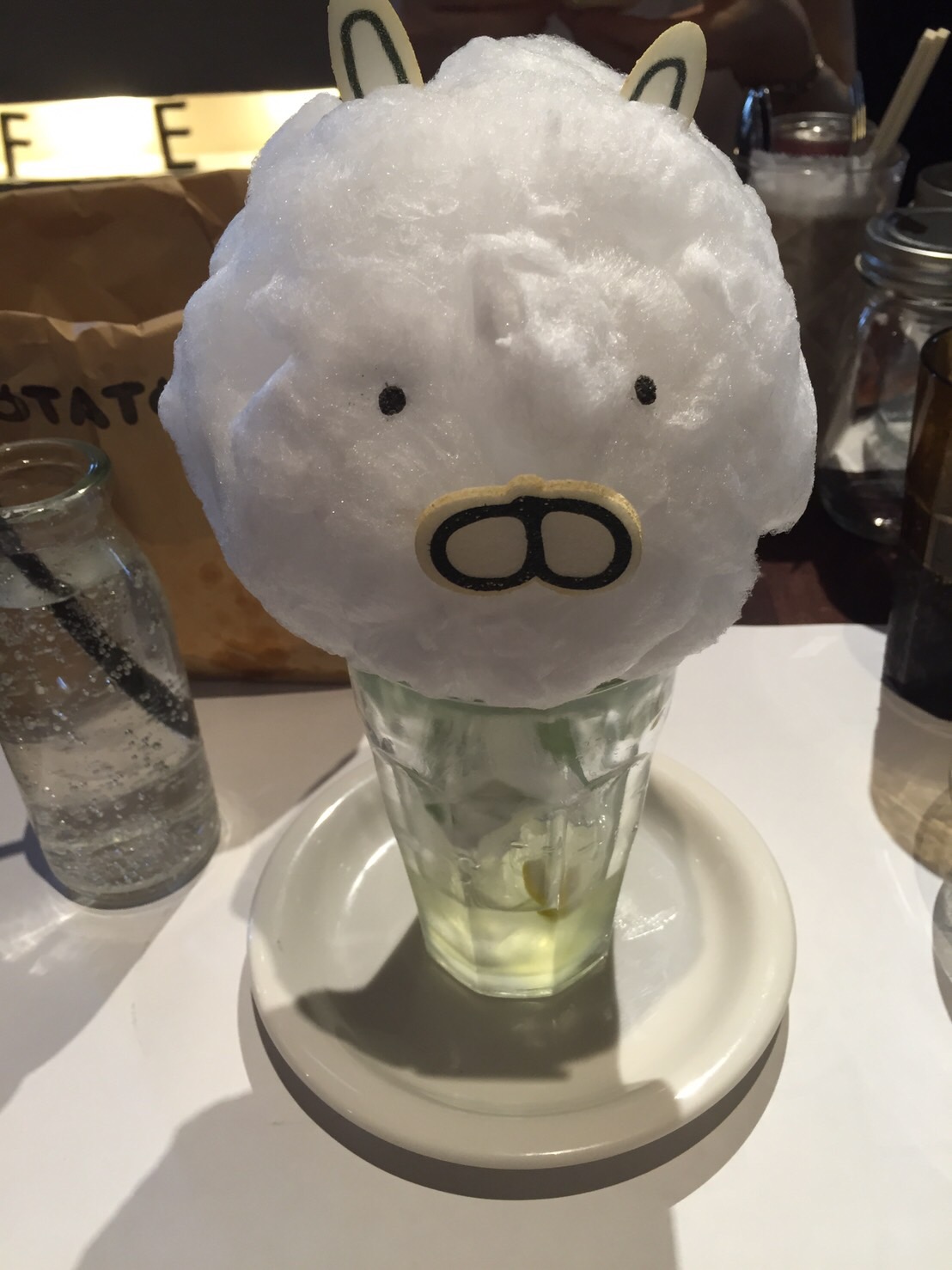 綿菓子で作ったうさまるの顔が乗ったものです。