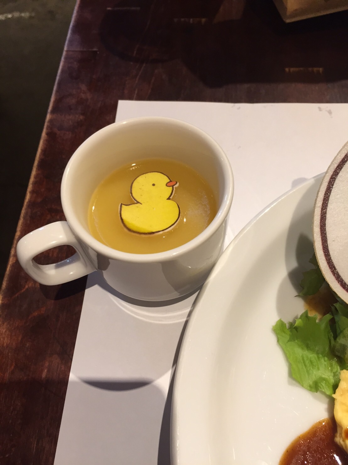 コーンスープの浮き身はかわいいひよこちゃん。