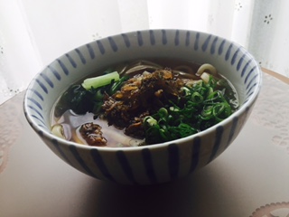 小松菜を添えた肉うどん。