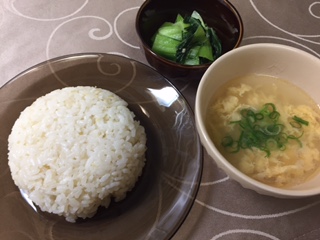 ごはんとたまごスープ、青梗菜の