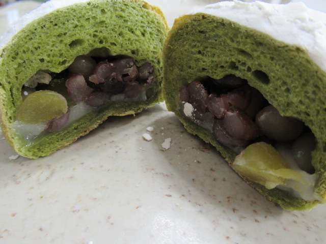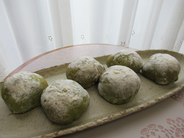 抹茶と米粉の豆大福。