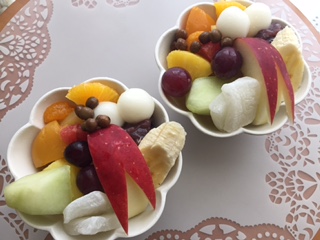 母とのおやつにあんみつも