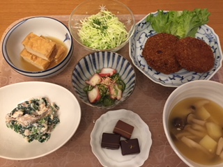 コロッケは買ったもの。厚揚げの
