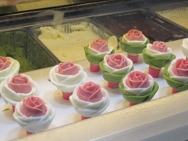 美しいバラをかたどったアイスも。