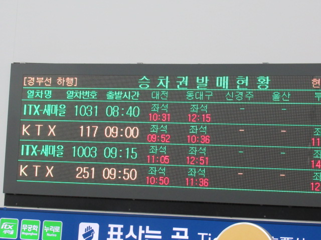 今日は高速鉄道KTXに乗りますよ。