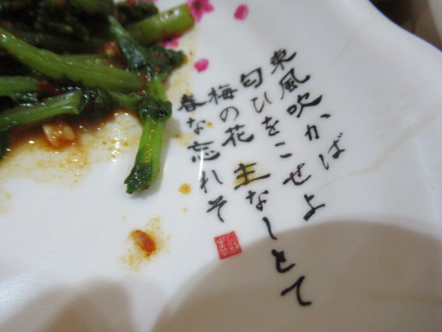 お皿には菅原道真の歌が。