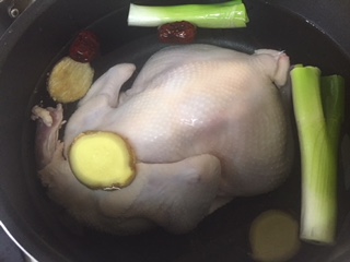 丸鶏茹でているあほサリー。