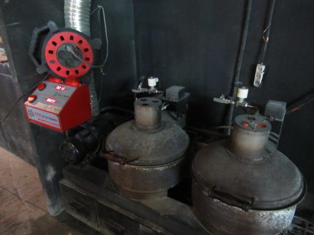 店の裏ではせっせと炭を