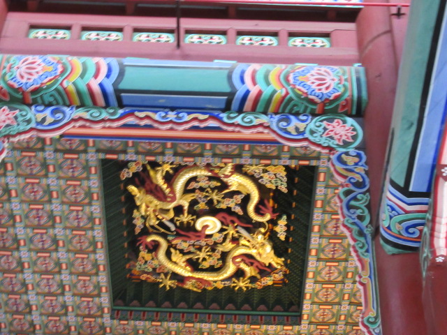 玉座の上には二匹の龍が赤色の