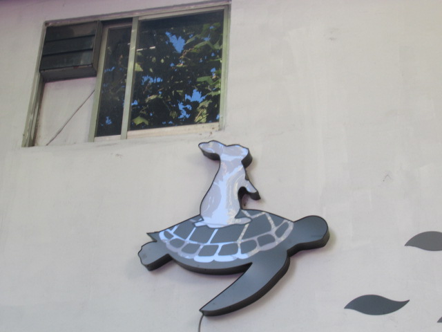 亀がうさぎに乗っています。