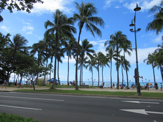 しかも右手にはワイキキのビーチ。
