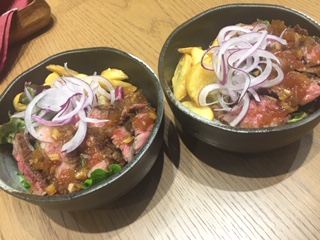 搭乗前にステーキ丼!
