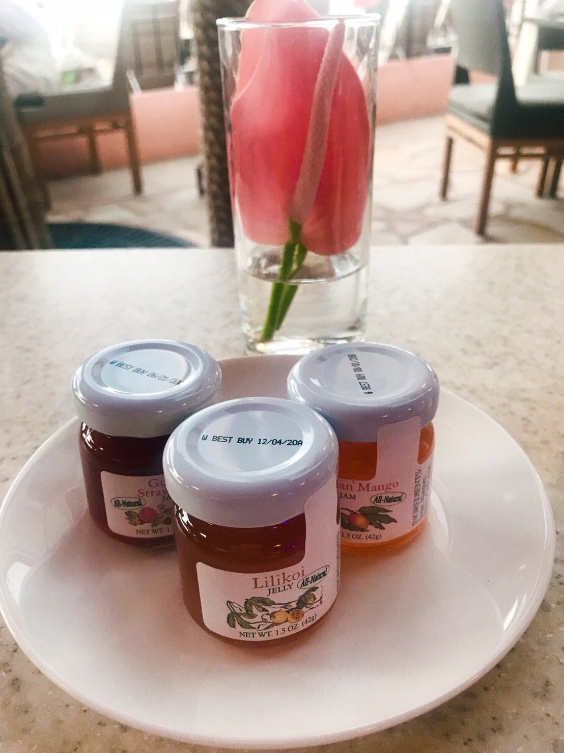 ピンクのパンケーキとリリコイのジャム。