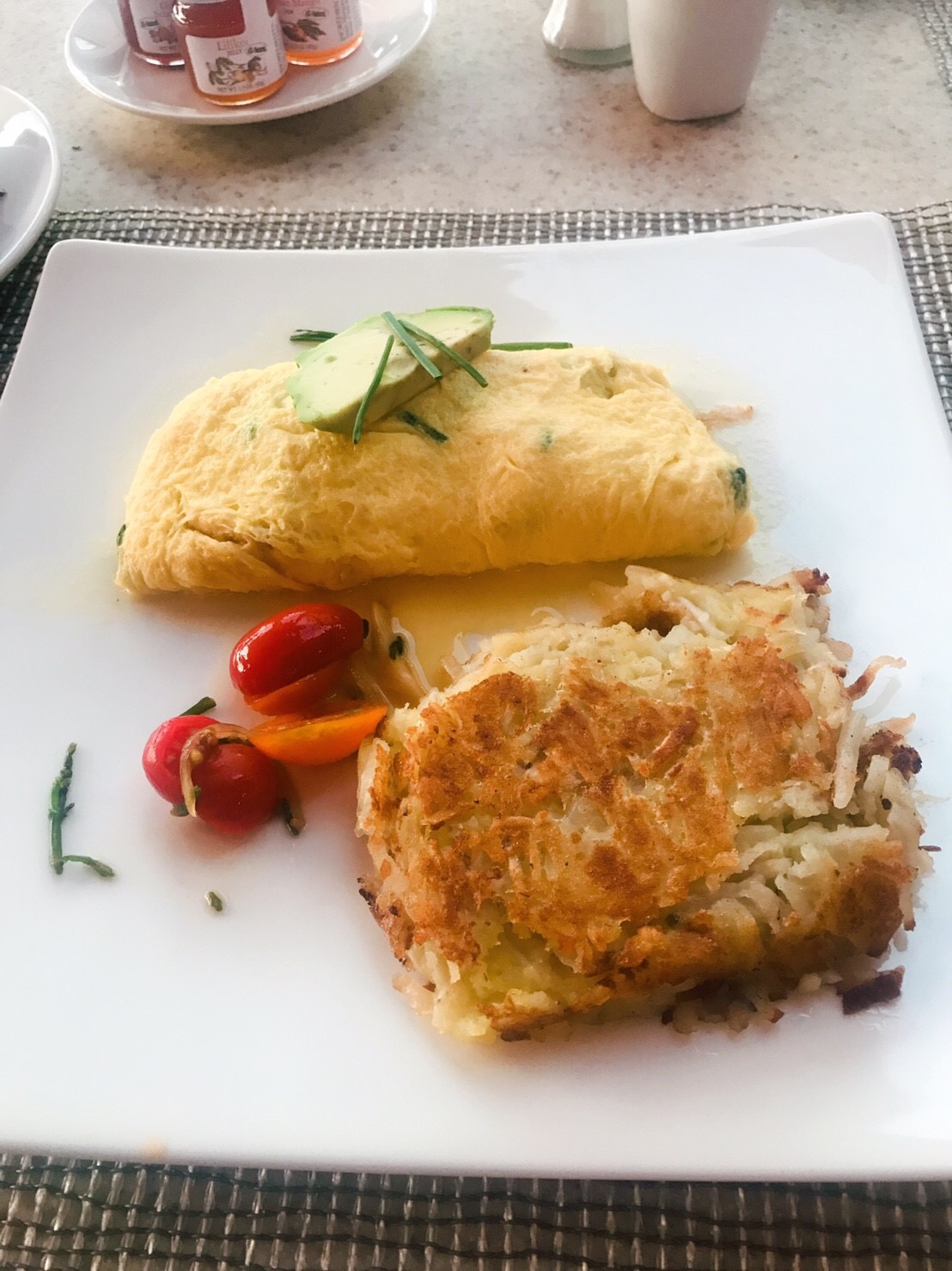 添えの焼いたトマトもハッシュドポテトも